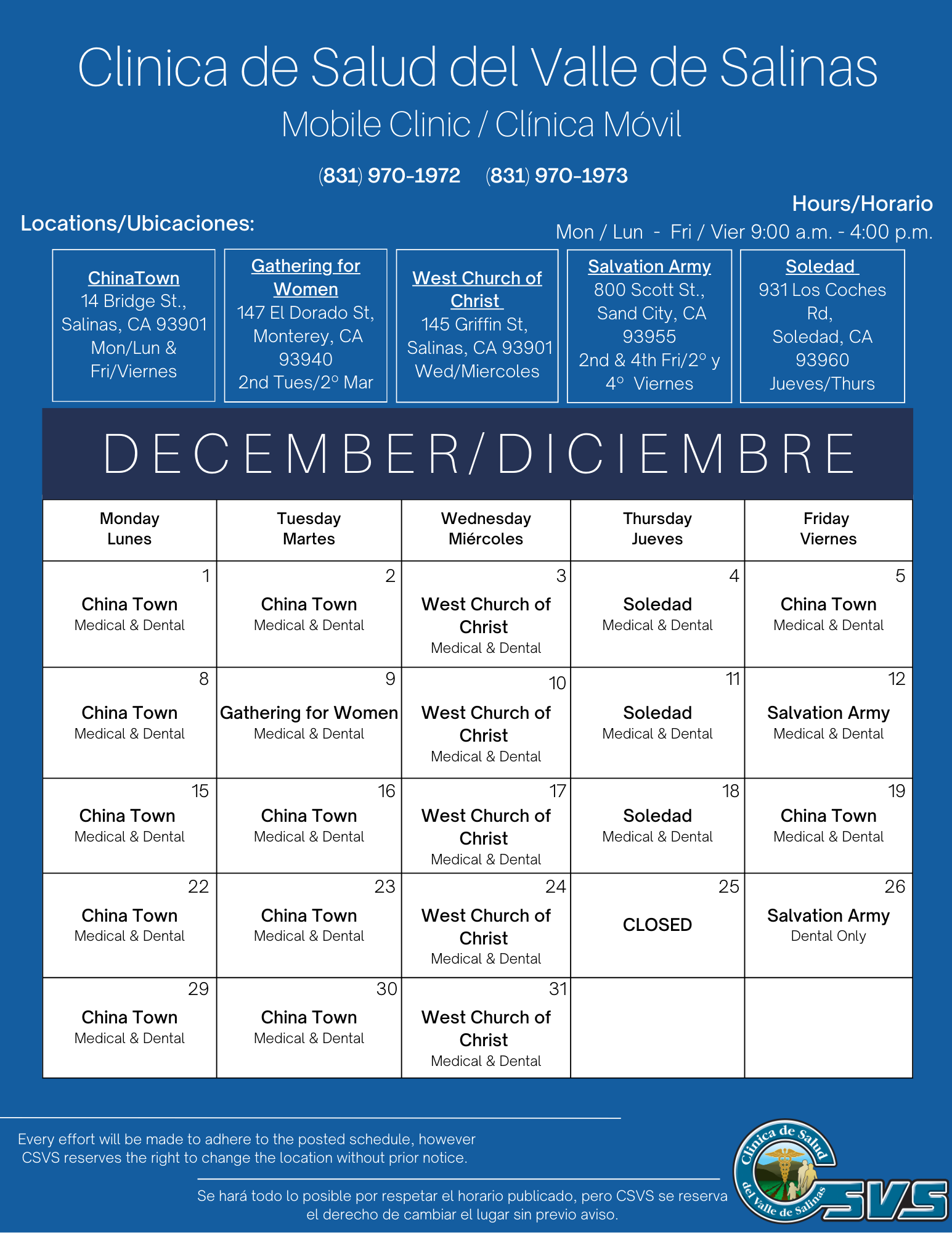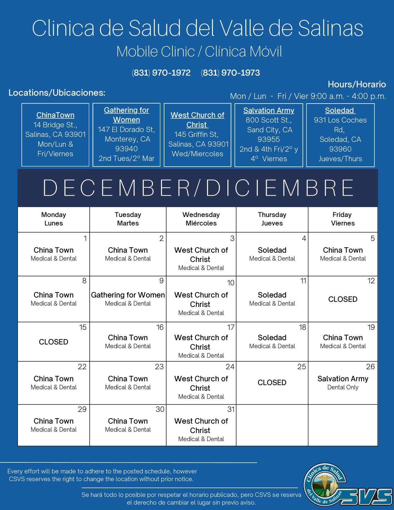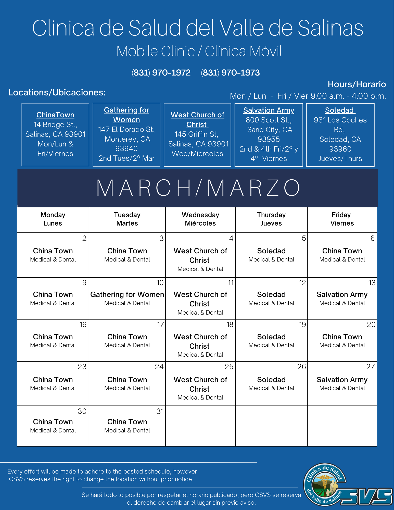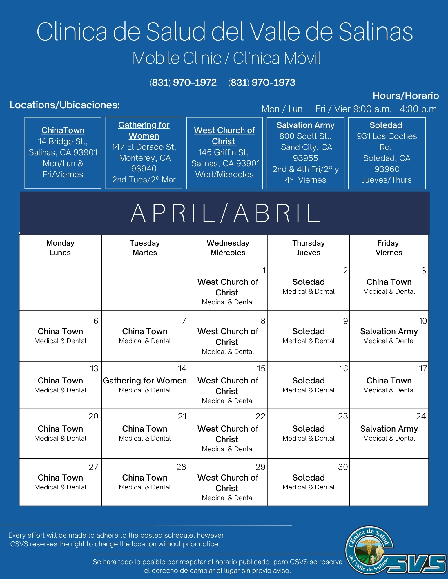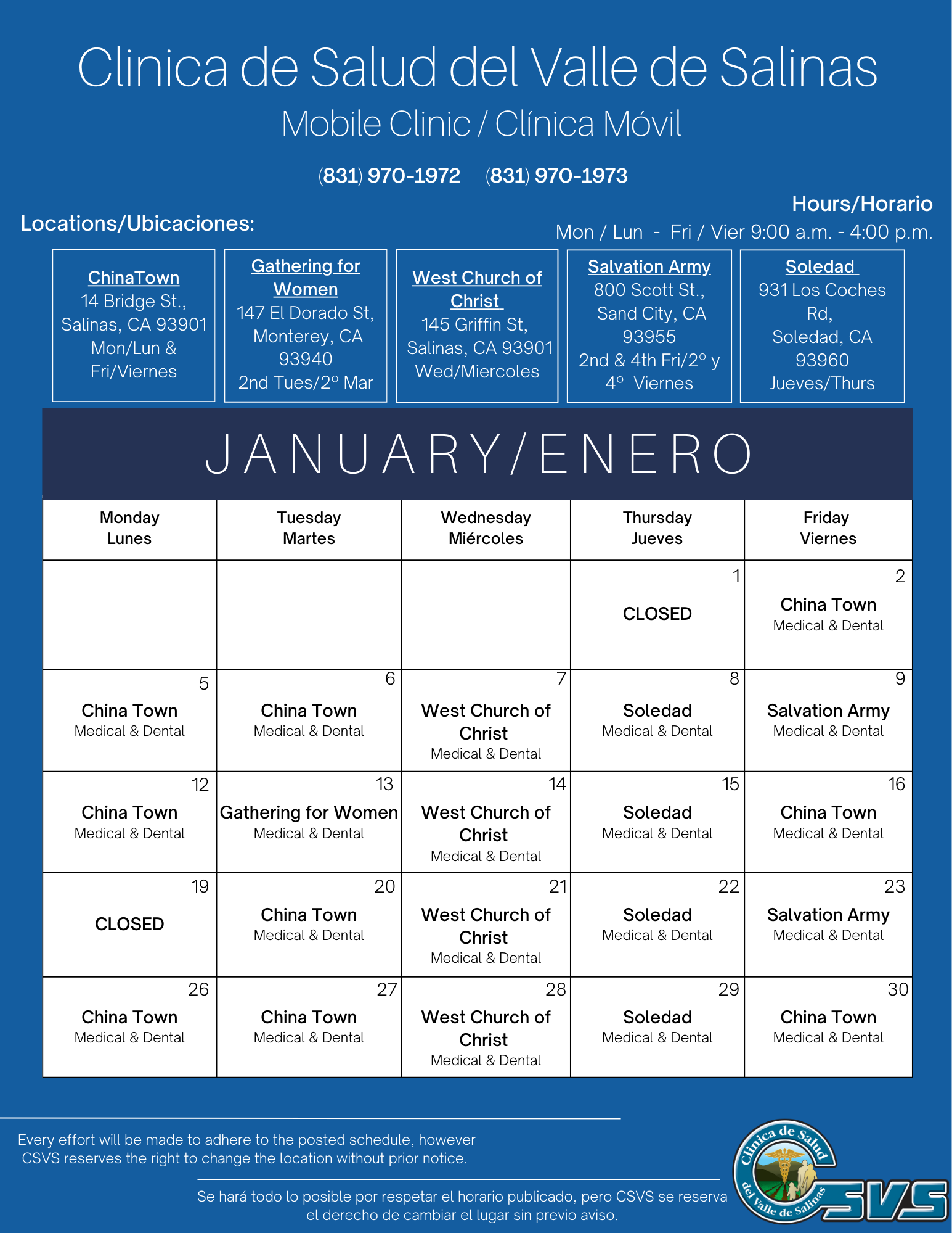 Mondays & Fridays / Lunes y Viernes